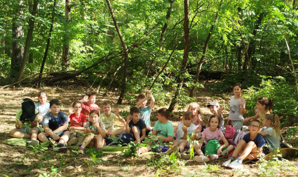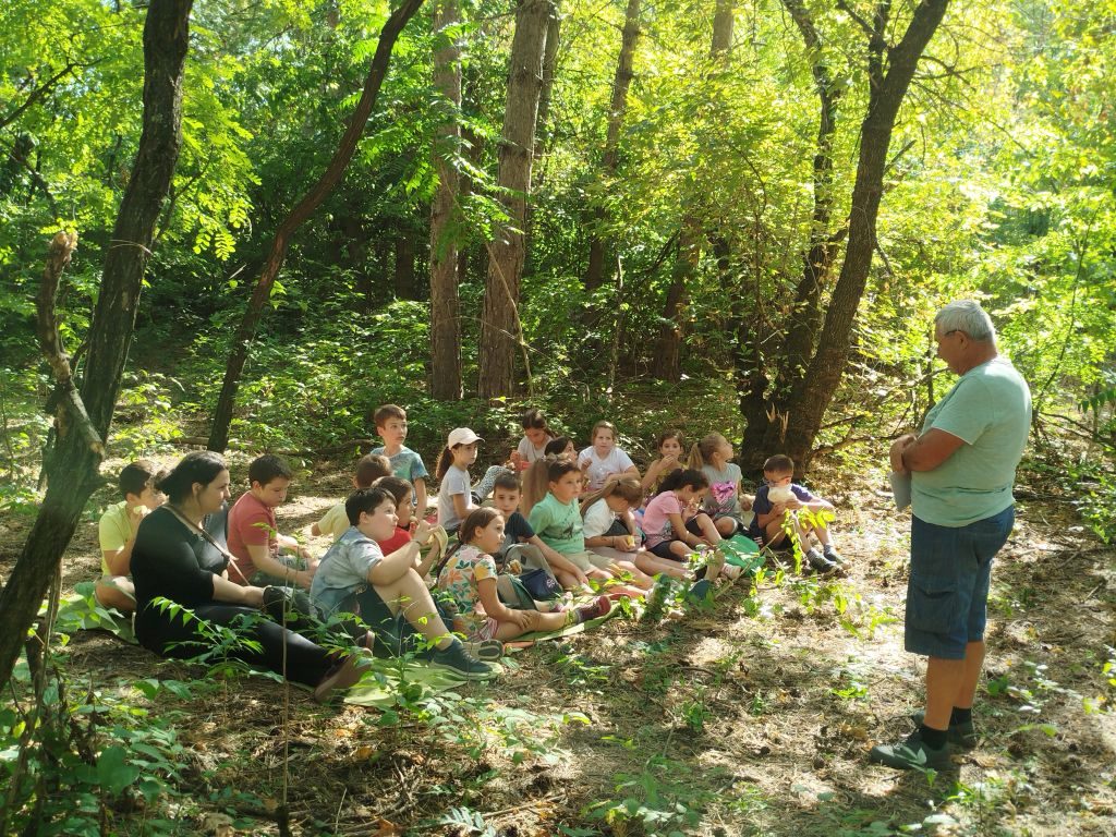 Misi bácsi mesélt az bordányi erdő történetéről, az erdőben található élőlényekről,  fákról, növényzetről, az erdei állatokról, és még az erdő immunrendszeréről is. A gyerekek figyelmesen hallgatták az előadást, miközben megpihentek a fák alatt.