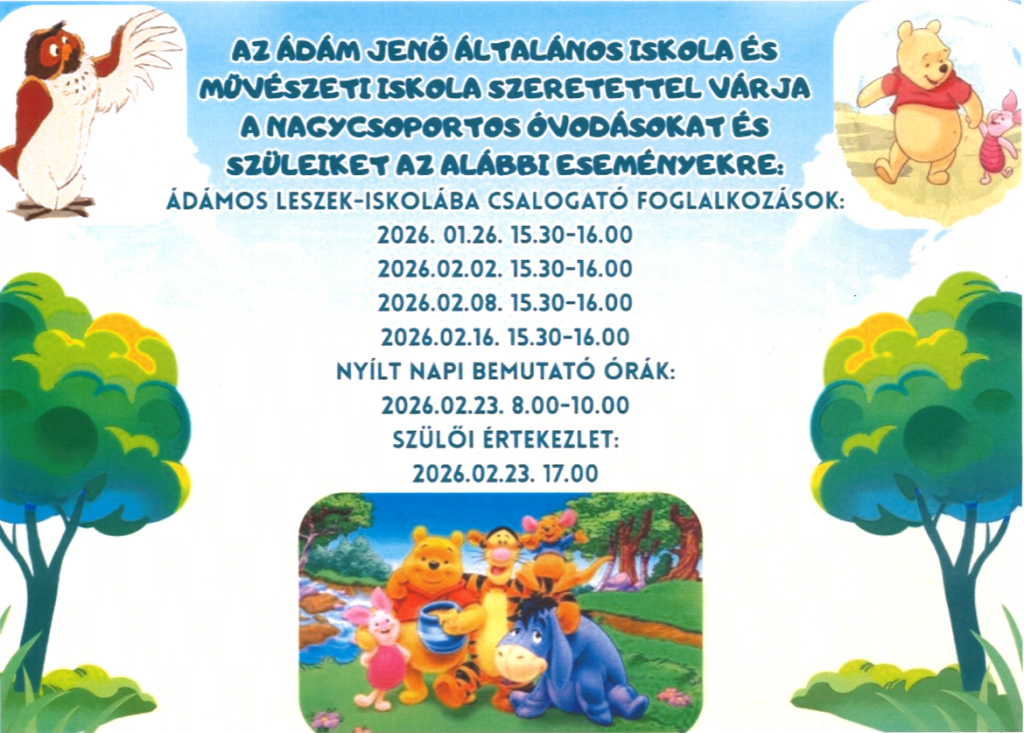 Szeretettel hívjuk a nagycsoportos óvodásokat és szüleiket a közös játékra, bemutató órákra és szülői értekezletre!