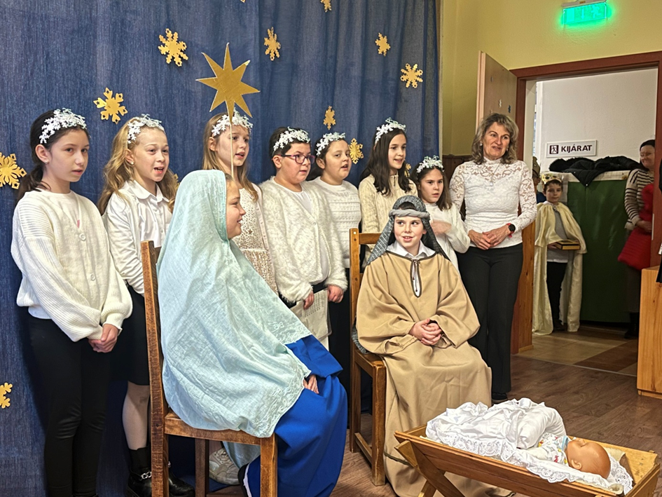 Az utolsó téli szünet előtti napon az iskolásoknak adtuk elő a betlehemes műsort a tornateremben. Ez az előadás már igazán közel volt a karácsonyhoz. A gyerekek remekül helyt álltak, lelkes produkciójuk nagy sikert aratott a gyerekek körében.
