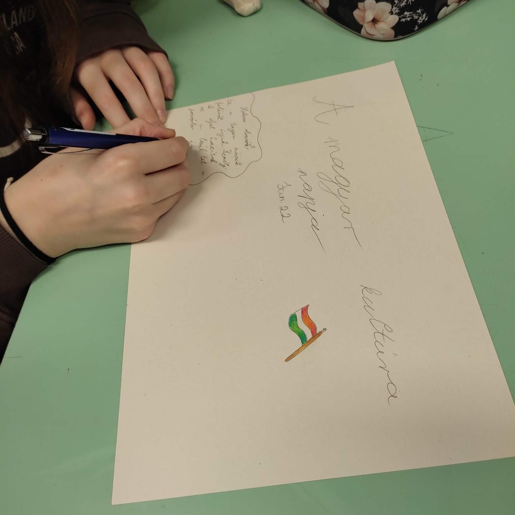 Zárásként egy kreatív feladat várt rájuk: a nemzeti kultúránk ünnepéhez kapcsolódóan egy plakátot kellett készíteni. A sokszínű munkák segítségével bemutathatták a témát érintő gondolataikat, érzéseiket.
