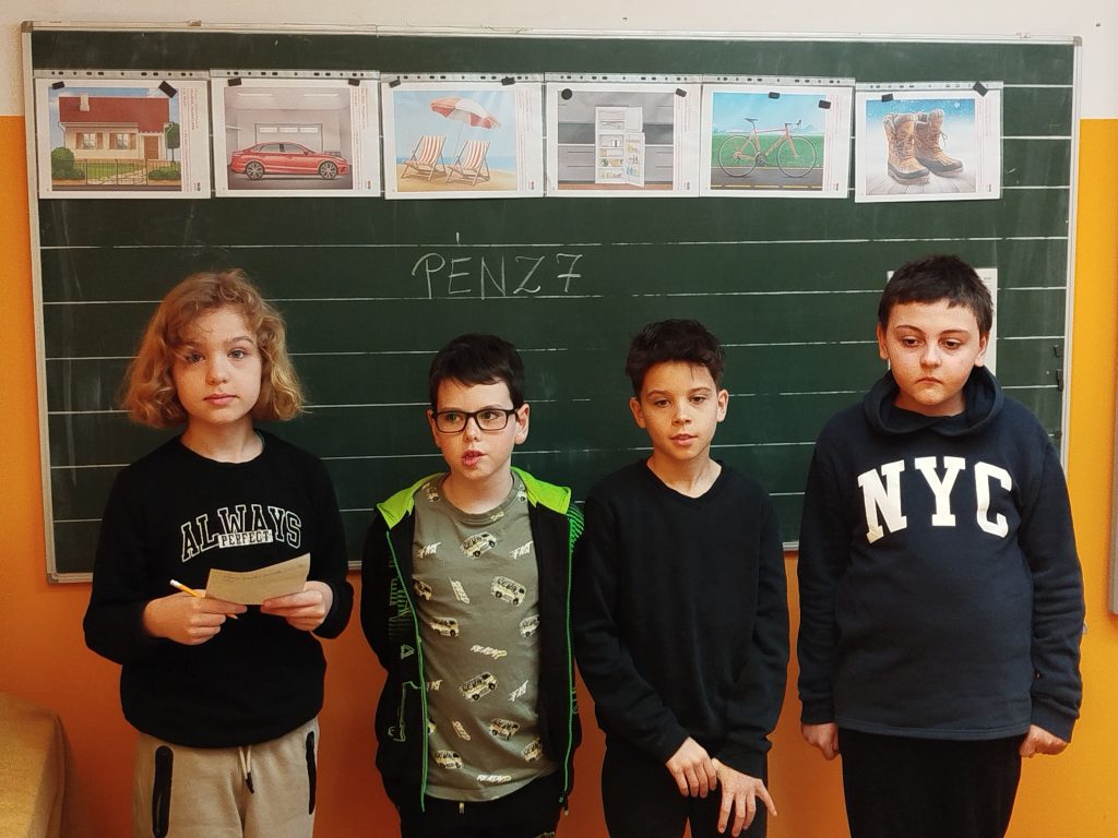 Az 1-4. osztályos tanulók játékos és kreatív foglalkozásokon ismerkedtek a pénz fogalmával, a vásárlás és spórolás alapjaival. Az első osztályosok pénztárcát készítettek technika órán, a második osztály mesék és boltos játék segítségével gyakorolta a tudatos vásárlást, míg a 3–4. osztályosok a takarékosság és pénzügyi tervezés alapjaival foglalkoztak mesék és csoportfeladatok révén.