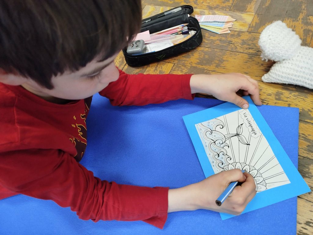 Az órát esőbotos relaxáció és a Víz világnapjára készített mandalás színező kiszínezése zárta.