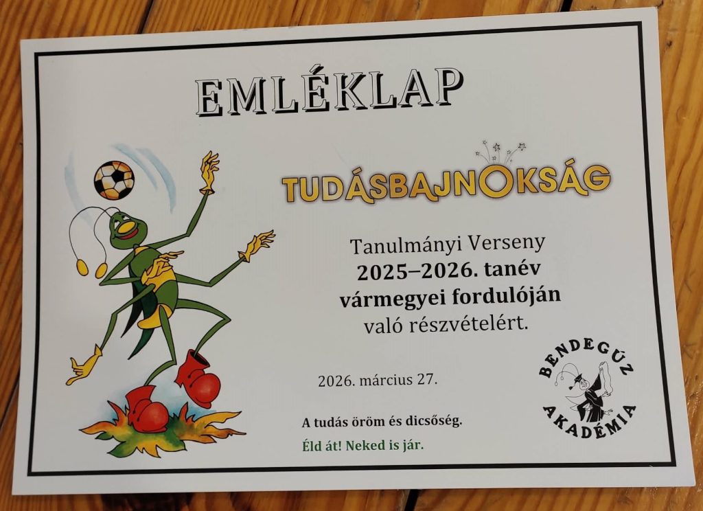 2026. március 27-én rendezték meg Makón a Református Általános Iskolában a Tudásbajnokság vármegyei fordulóját. Ebben a tanévben közel húsz fő képviselte iskolánkat 2. osztálytól 7. osztályos korig.