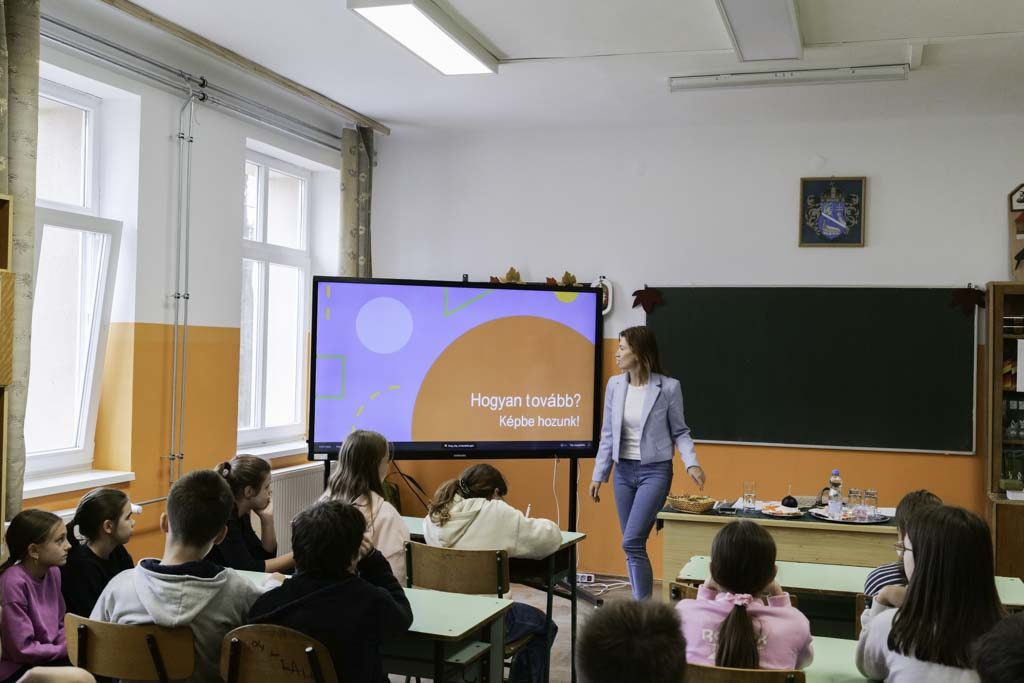 Andrea az 5–8. osztályos diákoknak tartotta tájékoztató előadását, ahol bemutatta a mezőgazdasági szakmákat, továbbtanulási lehetőségeket és a térségünk agrárjellegű középiskoláit. Andrea közvetlen stílusa és barátságos hangvétele azonnal lekötötte a gyerekek figyelmét, miközben megismerhették az agrárvilág sokszínű lehetőségeit. A vetített képek és kisfilmek révén a diákok könnyen elképzelhették, hogyan zajlik a munka a különböző szakmákban, és milyen lehetőségeik lehetnek a jövőben.