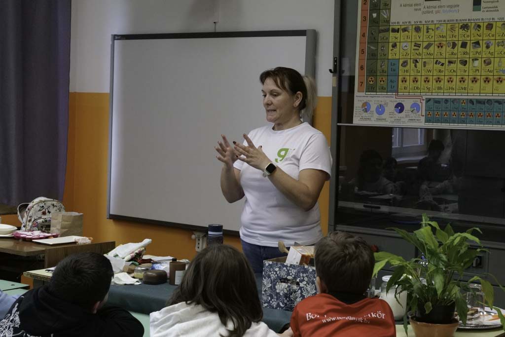 Az előadás arra is rávilágított, milyen kihívásokkal néz szembe a mai társadalom a klímaváltozás miatt, és milyen szerepe lehet mindenkinek – akár már gyerekként is – a problémák enyhítésében. Szóba kerültek a passzív és aktív házak működési elvei, az Alföld elsivatagosodásának folyamata, valamint a fásítás és a helyi ökoszisztémák védelmének előnyei. A természet körforgásának megértése kapcsán a tanulók új szemszögből ismerhették meg, hogyan kapcsolódik össze az emberi tevékenység és a környezet állapota.